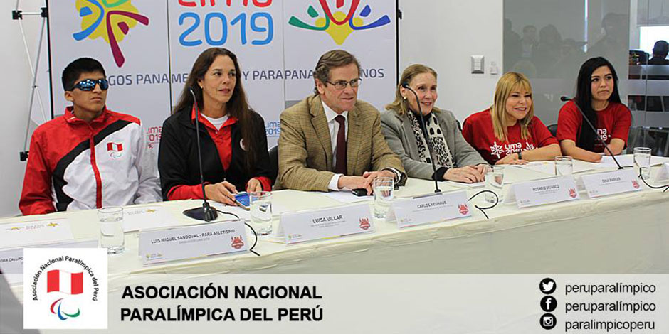 San Luis, 23 de agosto. Cuatro nuevos embajadores tienen los Juegos ParaPanamericanos Lima 2019. Esta tarde, en una concurrida conferencia de prensa, fueron presentados Dunia Felices, Alejandra Callirgos, Luis Sandoval – Atleta Paralímpico T11 e Israel Hilario. A ellos se les suma, la reconocida comunicadora Gina Parker.