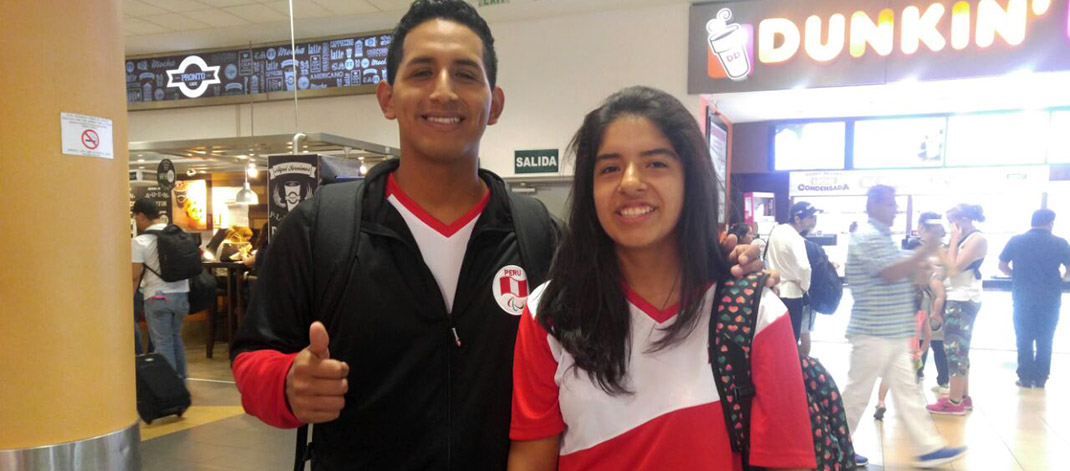 Lima, 17 de febrero. Diana Rojas es nadadora, Ronaldo Mena atleta. Los dos son parte de las figuras emergentes del deporte paralímpico nacional y ambos viajaron hoy rumbo a Colombia para participar del campamento denominado Road to Sao Paulo 2017 que se lleva a cabo en Bogotá gracias al apoyo a Agitos Foundation y el Comité Paralímpico Colombiano CPC.