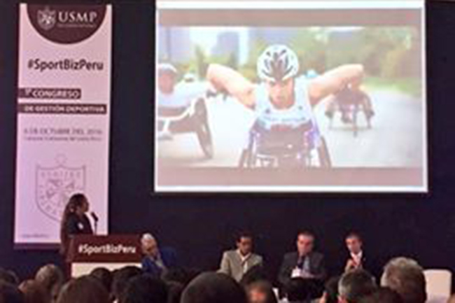 Lima, 6 de octubre. La presidenta de la ANPPERÚ, Lucha Villar, estuvo presente como panelista en el bloque en el Primer Congreso de Gestión Deportiva #SportBitzPeru que tuvo lugar esta mañana en la Cámara Comercio de Lima. Ella se encargó de dar detalles del Movimiento Paralímpico en el Perú, así como de precisar cuál es el rol de las federaciones, asociaciones y clubes.