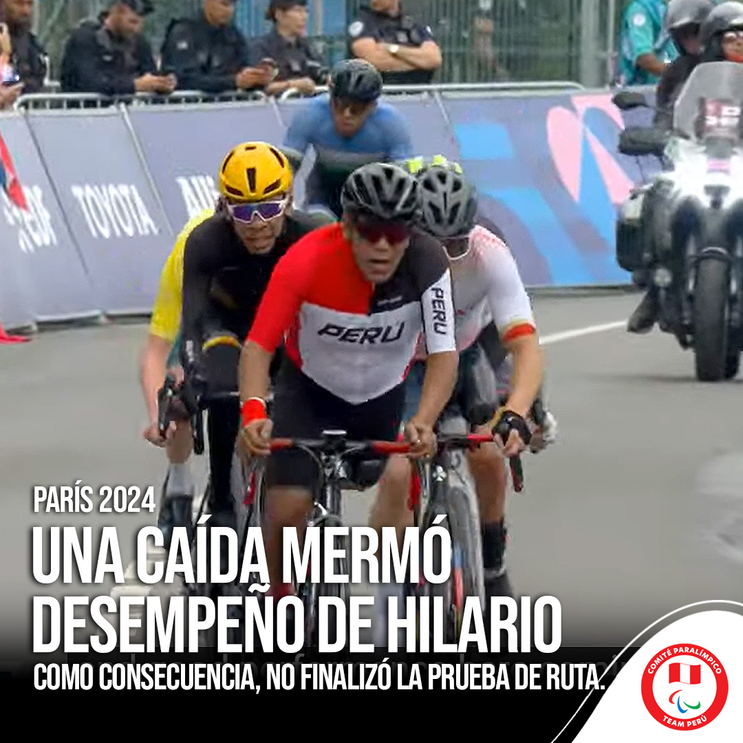 París, 7 de setiembre. ¡Qué piña! Empleando esa expresión, bien peruana por cierto, calificaríamos la mala fortuna que tuvo el Para ciclista huanuqueño Israel Hilario esta mañana. Es que poco antes de que comience la competencia de la ruta individual C1-3, y a la salida de la zona de calentamiento, se tropezó con un desnivel en la pista y cayó aparatosamente.