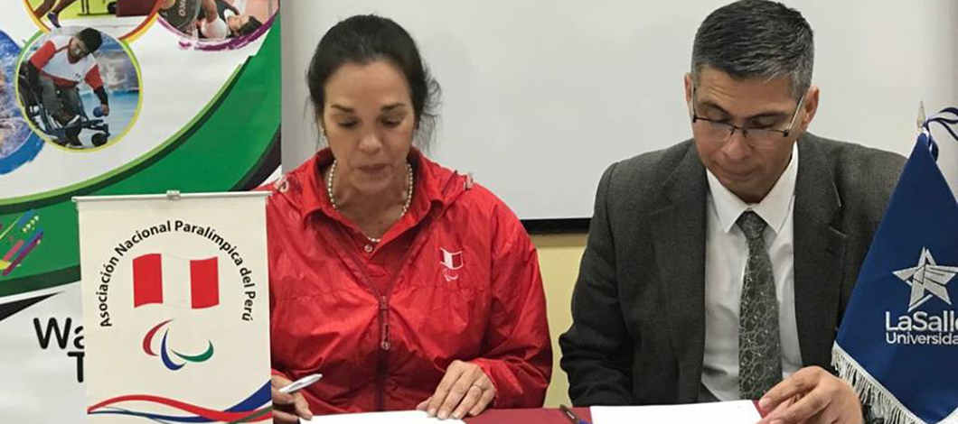 Arequipa, 24 de julio. El Taller de Movimiento Paralímpico dictado por la presidenta de la Asociación Nacional Paralímpica del Perú, Lucha Villar y Jaime Drago no solo fue valioso para difundir los principios del paradeporte, sino que pernitió suscribir un convenio de cooperación mutua con la Universidad La Salle.